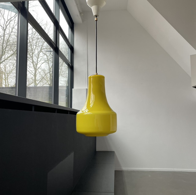 Yellow pendant mid-century glass
